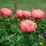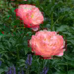 Introduced in 1965, Peony ‘Coral Sunset’ was a breakthrough for its uncommon hue, and it remains a standard among a handful of coral-colored Peonies. The mildly fragrant flowers are among the earliest Herbaceous Peonies to bloom. The relatively flat, semi-double to double blossoms emerge deep coral with rose-pink overtones and gradually fade to a delicate shade of ivory with a cluster of yellow stamens at their centers. Each beautiful bloom is borne singly on a stem. An American Peony Society Gold Medal Selection. Early.