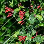 Lonicera is a large group of (mostly) deciduous shrubs and vines from Europe, Asia, and North America. They are known for their brightly colored, sometimes fragrant flowers. The vines will grow readily in humus-rich, well-drained soil and are rarely troubled by insects, diseases, or deer.