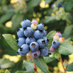 Blueberries require about 1″ of rain or irrigation per week. Surrounding your plants with a 4–5′ circle of mulch helps keep the soil moist and prevents the growth of weeds. Apply a 2–4″ layer of wood chips, shredded bark, or other organic material. The year after planting (and every year thereafter) apply a fertilizer designed for acid-loving plants at flowering time in spring and again about 4 weeks later.