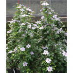Grace your garden with the shimmering beauty of this high-climbing Clematis. The vigorous vine blooms all season long, covering itself with silvery lavender-blue blossoms. A circle of dark red stamens at the center of each flower adds an eye-catching counterpoint, and the dark green leaves make an ideal backdrop for these ethereal blooms. Planted in sun or partial shade, the vine will grow up to 7' tall. Pruning group 2. 'Zostiwa' PP 20,372