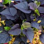 The deep purple foliage of Sweet Caroline Sweetheart Jet Black™ will complement everything in your garden. This compact, mounding plant grows up to 12″ tall and will not overpower its neighbors. Ipomoea batatas is heat tolerant and happy in full sun or shade. A Proven Winners® variety. 'NCORNSP-021SHJB' PP 29,378