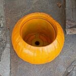 Remarkably realistic in its resemblance to the real thing, the Pumpkin Planter, Orange, is made of durable, hefty, glass fiber that’s reinforced with concrete. Painted autumnal orange and subtly ribbed and detailed, the container is built to last for years and sturdy enough to weather autumn storms. It makes a perfect home for Chrysanthemums, ornamental Cabbage and Kale, colorful Heuchera, Ornamental Grass, and other fall favorites.