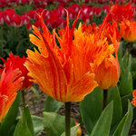 There are several groups, however, that do offer strong multi-year performance. Species Tulips, Darwin Hybrids, Fosterianas, Greigiis, Kaufmannianas, and WFF Perennial Tulips can put on a stunning display for several years with your help. For the best display, avoid the "soldier effect" and plant the bulbs in clusters. Plant large bulbs 5–6" apart and smaller bulbs 2–3" apart. Small Species Tulips are ideal for rock gardens and the tall, large-flowered varieties can hold their own anywhere.