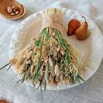 Create an instant autumn mood in any room with the Verdant Jubilee Sheaf. This decorative, beautifully textured harvest bunch blends dried stems of Wheat, Sorghum, Phalaris, and Bunny Tails with wisps of green Grasses to capture the moment when late summer turns to fall. This tabletop bouquet arrives wrapped in a burlap cuff tied simply with knotted twine. It can be displayed upright or on its side.